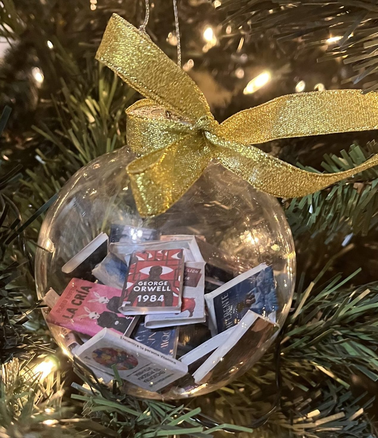 Una esfera transparente llena de diminutos libros que encantará a cualquier amante de la lectura.